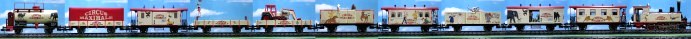Mit nur die "richtigen" Circuswagen (also 1996-2000 und 2003) und der Lokomotive hat man eigentlich schon ein kompletter Circuszug. Der komplette Circuszug: