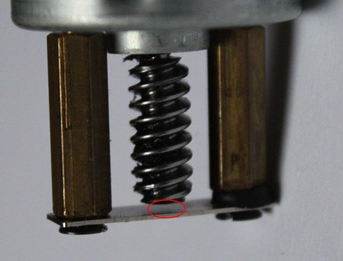 Unterhalb der Schneckenachse ist ein Kugel angebracht worden (auf dem Platz der rote Markierung in der Abbildung oben). Der Mä-Ersatzteilnummer war: 650627