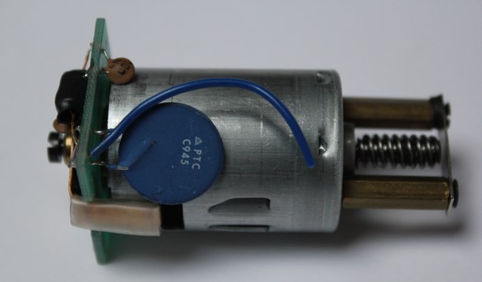 1. PTC C945 Thermistor: Überlastschutz und Schaltverzögerung (notwendig beim Einsatz auf eine Analoge Modellbahn). PTC meint: Positive Temperature Coefficient, dieser Thermistor wacht also dafür das die Strom die in den Motor fließt nicht zu groß werd.