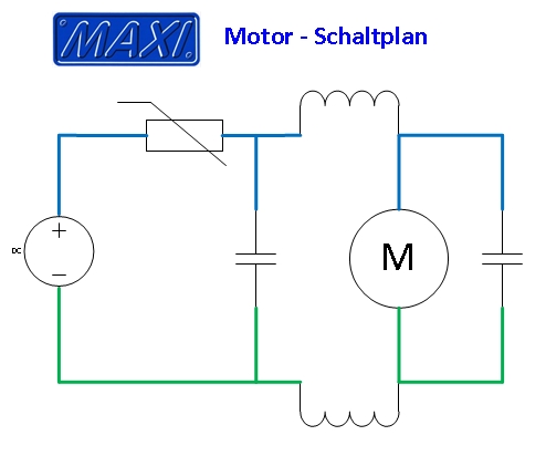 Mit der Aufschrift: Maxi Motorplatine nsm (Kondensatoren ohne Angabe, Drosseln mit Farbkodierung), sehe Abbildung Unten Rechts