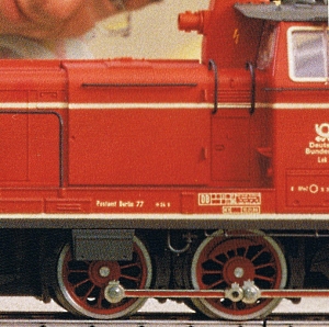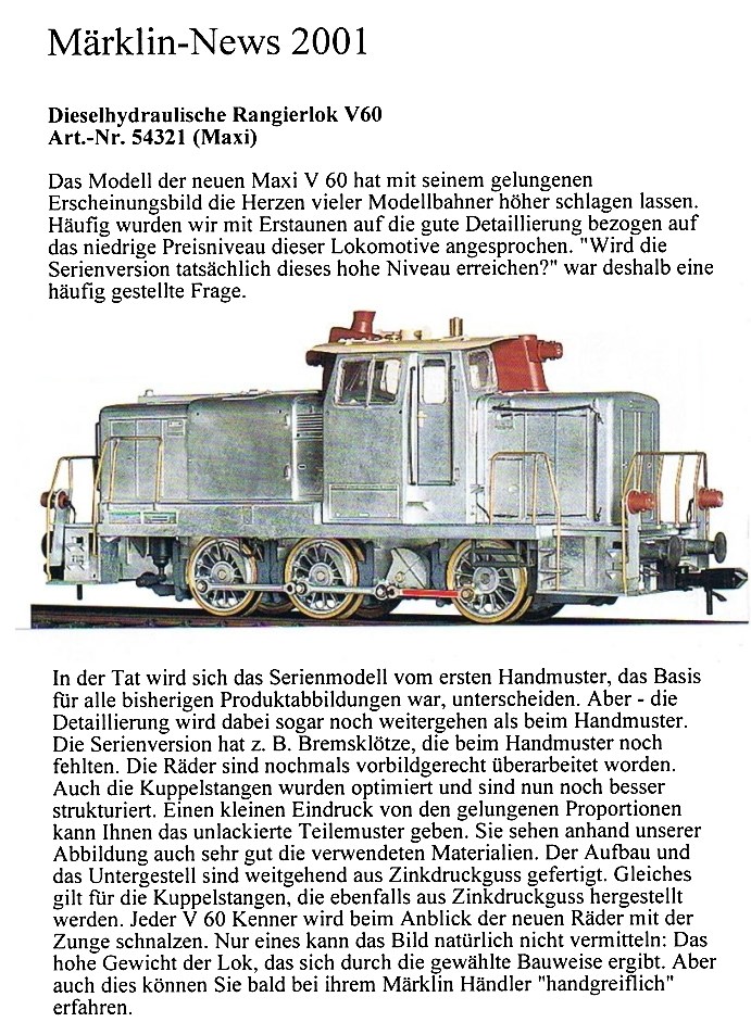 Das erste Handmuster der Deutsche Bundesbahn V60 (vorgestellt in Neuheiten 2000) hat solche unschönen Kupplunggestänge (sehe oben links) das ich mich sofort entschließ diesem Modell nimmer zu kaufen. Vielleicht haben mehrere Spur 1-Liebhaber Mä ein Bericht geschickt daß dieses Modell so nicht kaufwürdig war.