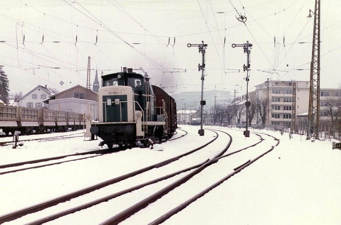 Die 261 841 in Altrot in der Bundesbahn-Zeit (Jan. 1977) im damaligen Heimatbahnhof (Haltingen):